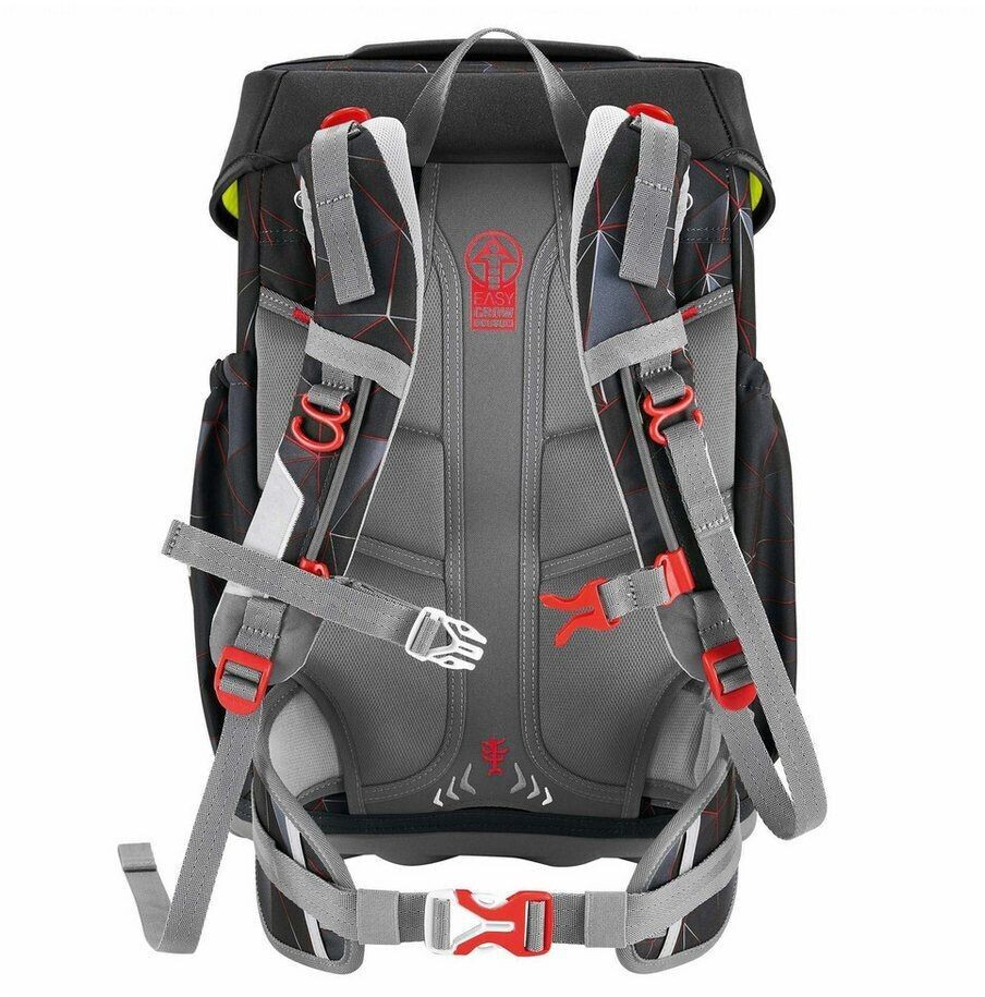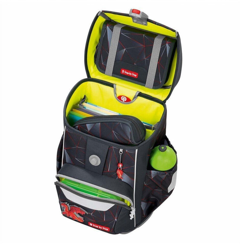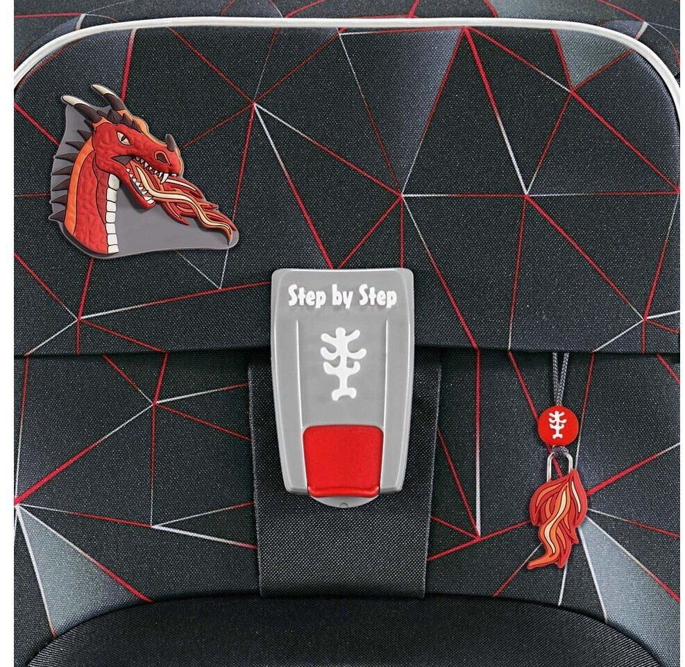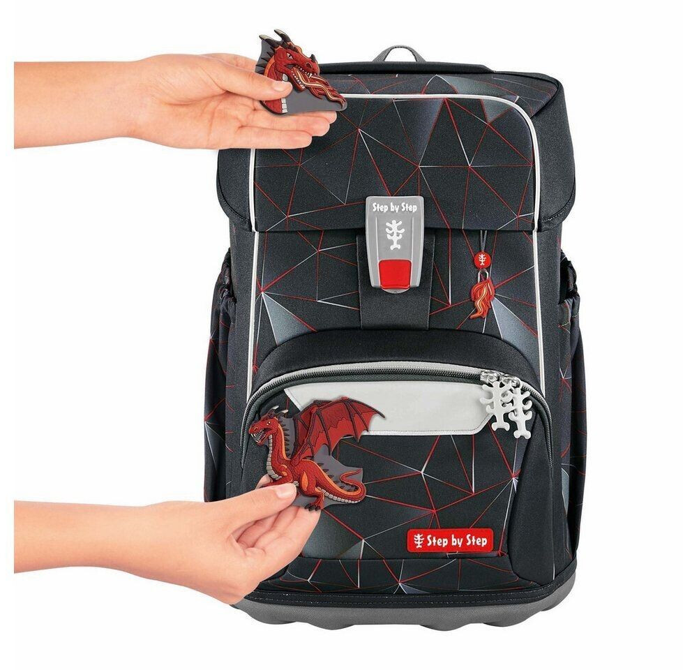 Step by Step Schulranzen GIANT - das geräumige Leichtgewicht für die Grundschule für große Kinder. Das geringe Gewicht verdankt der GIANT einer besonders leichten Hightech-Fiberglas-Konstruktion. In dem großen Hauptfach kommen alle Arbeits- und Schreibhefte unter. Das extra Bücherfach nach am Rücken sorgt für eine optimale Gewichtsverteilung und Ordnung im Schulranzen. In der isolierten Fronttasche bleibt die Lunchbox kühl und warm, ohne dabei in den Innenraum zu drücken. Dank Auslaufösen läuft auch nichts in das Schulranzen-Innere. In den beiden Seitentaschen mit Gummizug finden Trinkflasche, Regenschirm etc. ihren Platz. Ausgelaufene Flüssigkeiten werden dank Auslaufösen vom Schulmaterial ferngehalten. Auf der Deckel-Innenseite befinden sich Gummibänder zur optionalen Fixierung des Federmäppchens. So hat es seinen festen Platz, für mehr Organisation im Schulranzen. Der Turnbeutel lässt sich einfach mit Druckknöpfen und Schlaufe am Schulranzen befestigen. So sind die Hände auf dem Schulweg frei und der Turnbeutel kann nicht verloren gehen. Mit dem EASY GROW SYSTEM lässt sich die Höhe der Schultergurte sowie die Rückenlänge des Schulranzens direkt auf dem Kinderrücken von 120 bis 170 cm Körpergröße individuell anpassen. Der höhenverstellbare Brustgurt sowie der Hüftgurt stellen sicher, dass das Gewicht des Schulranzens von den Schultern genommen und auf den ganzen Körper verteilt wird. Der Brust- und Hüftgurt ist bei Bedarf auch abnehmbar. Die stabile, wasserdichte Bodenplatte schützt vor Schmutz und Nässe. Die MAGIC MAGS machen den Ranzen bunt und individuell: die wechselbaren Motive und Anhänger lassen sich schnell und einfach austauschen.