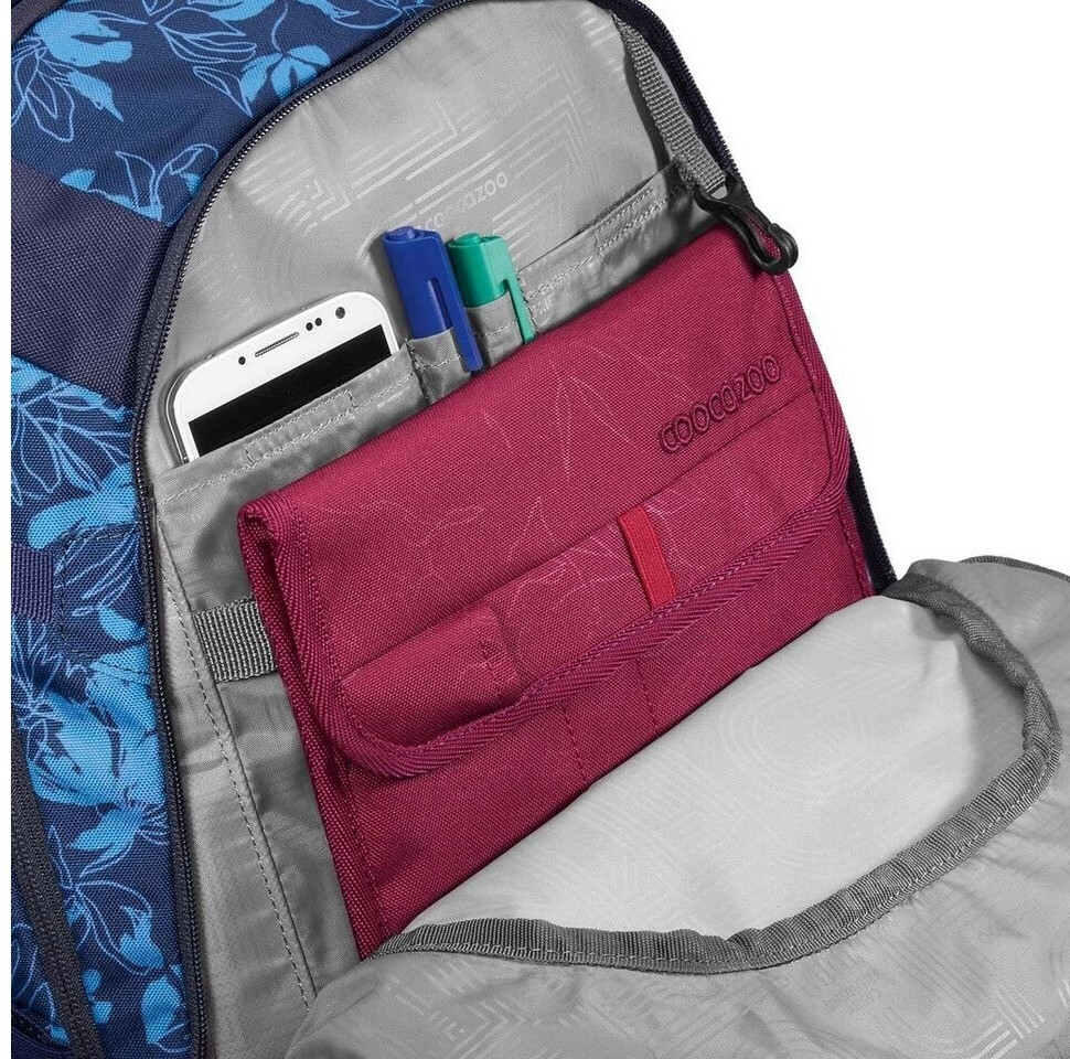 Mit dem coocazoo Schulrucksack Mate kommt Ihr Kind kinderleicht durch die weiterführende Schule. Verschiedene funktionale Details, ein ergonomischer Aufbau und abwechslungsreiche Designs machen das Modell zum Allrounder unter den Schulrucksäcken. Um die Oberfläche individuell zu gestalten, können Klett-Patches, sogenannte Colour-Ups genutzt werden. Diese sind in den unterschiedlichsten Designs erhältlich und können beliebig kombiniert werden, um einen ganz neuen Look zu schaffen. Gepolsterte Schultergurte und ein verstärkter Rücken aus weichem Mesh-Material sorgen für ein angenehmes Tragegefühl. Damit der Schulrucksack außerdem stabil sitzt und beim Laufen nicht verrutscht, besitzt er sowohl einen höhenverstellbaren Brustgurt als auch einen abnehmbaren Hüftgurt. Dank dem Easy-Grow-System wächst der Rucksack sogar praktisch mit dem Kind mit, denn die Länge kann der Körpergröße entsprechend stufenlos eingestellt werden, um die optimale Passform zu erhalten. In zwei geräumigen Hauptfächern finden alle nötigen Schulutensilien Platz, von Heftern über Bücher bis hin zum Federmäppchen. Schwere Bücher sollten dabei möglichst weit hinten transportiert werden, um eine ergonomische Verteilung der Last zu erreichen. Zusätzlich besitzt der coocazoo Mate ein Organizerfach, in dem das Handy und weitere Kleinigkeiten strukturiert unterkommen, sowie ein Frontfach für die Lunchbox. Die Trinkflasche und der Regenschirm finden in den Seitentaschen Platz. Der Umwelt zuliebe produziert coocazoo zu 100 % klimaneutral und verzichtet bei der Imprägnierung auf umwelt- und gesundheitsschädliches PFC und PVC. Das Obermaterial besteht außerdem aus recycelten PET-Flaschen, um natürliche Ressourcen zu schonen.