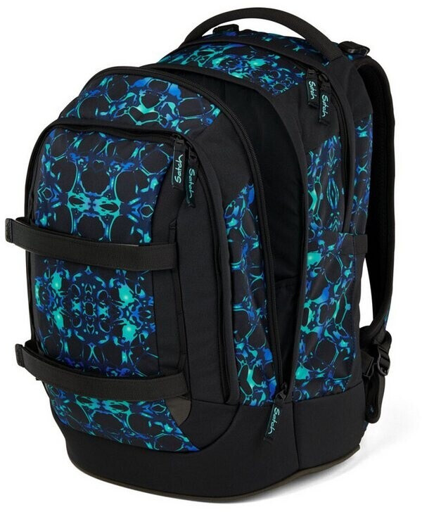 satch pack Schulrucksack (blau, grün, mint, schwarz) - Der satch pack ist ein wahres Organisationstalent und bietet Ihnen die optimale Kombination innovativer Trekking Technologie mit den Besonderheiten eines Schulrucksacks. Der Schulrucksack ist durch sein cleveres Your-Size-System mit verstellbarer Rückenlänge optimal geeignet für eine Körpergröße von 1,40 m - 1,80 m. Ab der Kollektion 2025 besitzt der Rucksack das innovative 3D Soft-Mesh Rückensystem mit 3 Kammern und weicher Polsterung. Somit wird der Rücken entlastet und der Rucksack optimal an die Anatomie angepasst. Die atmungsaktive Rückenpolsterung mit innovativem Air-Flow Belüftungssystem und das Aluschienen-System bieten zusätzlichen Komfort und Stabilität. Der abnehmbare Hüftgurt garantiert die Verlagerung des Gewichts von den Schultern auf den stabilen Beckenbereich. Der Schulrucksack ist aufgrund seines Aufbaus mit einem höhenverstellbaren Brustgurt und der Entlastung des Rückens durch starke Beckenflossen am Hüftgurt, besonders ergonomisch. Ab der Kollektion 2025 wird der Beckengurt wieder über eine rückführende Bewegung angepasst. Die gepolsterten und verstellbaren Schultergurte und die Lastkontrollriemen gewährleisten eine ideale Lastverteilung auf den Schultern. Der Rucksack besitzt einen gepolsterten Tragegriff mit Soft-Touch-System ab der Kollektion 2025. Durch einen verstärkten Boden steht der Schulrucksack selbstständig. Das wasserabweisende Material bietet Schutz vor Feuchtigkeit und Schmutz. Zwei dehnbare Außenfächer bieten Platz für Trinkflasche und Regenschirm. Ab der Kollektion 2025 besitzt der pack breitere und höhere Seitentaschen und eine 3 Punkte Fixierung für den Sportbeutel (Sportbeutel nicht im Lieferumfang erhalten). Inklusive 2 austauschbare Frontswaps zur individuellen Gestaltung des Rucksacks. Ab der Kollektion 2025 mit der Möglichkeit 4 Swaps am Rucksack zu befestigen (zusätzliche Swaps sind nicht im Lieferumfang enthalten).