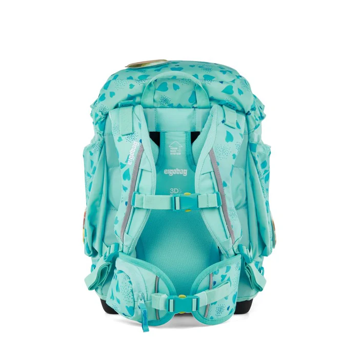 ergobag Schulrucksack pack (mint, grün) - Der flexible pack bietet Ihnen die optimale Kombination innovativer Trekking Technologie mit den Besonderheiten eines Schulrucksacks. Der Schulrucksack ist aufgrund seines ergonomischen Aufbaus mit einem gepolsterten Rückenteil, ergonomischen Butterfly Straps Schulterträgern, einem verstellbaren Brustgurt und einem verstellbaren, breiten Hüftgurt, optimal an die Körperform Ihres Schulkindes angepasst. Mit der Rückenanpassung durch das "Your-Size-System" und einem stabilisierenden Alu-Rahmen ist der Schulrucksack perfekt geeignet für Schulkinder von 100-150 cm Körpergröße. Das 3D Back Support Rückensystem entlastet dank seiner S-Form den Lendenwirbelsäulenbereich und ist dadurch optimal auf die Anatomie Ihres Schulkindes angepasst. Die innovativen Schultergurte liegen lückenlos auf dem Schulterbereich. Die Magnetschnalle am ergobag pack lässt sich mit dem "Einfinger-Griff" kinderleicht öffnen. Ein Tunnelzug-Verschluss sorgt für einen zusätzlichen Kompressionseffekt. Unter dem flexiblen Deckel befindet sich ein Reißverschluss-Fach zur platzsparenden Aufbewahrung des Etuis. Eine Snack Safe Fronttasche, ausgestattet mit einem wasserfesten Stoff, bietet Platz für die Brotdose. Das Hauptfach mit Trennwand, Bücherfach und Schlüsselring ist praktisch unterteilt. Am Beckengurt befindet sich eine kleine Reißverschlusstasche für das Busticket oder den Schlüssel. Neben der Frontschnalle befinden sich Schlaufen zur Befestigung der Hangies (Hangies nicht im Set enthalten). In den fest angenähten Seitentaschen ist Platz für Regenschirm und Co. Eine Vielzahl reflektierender Elemente bieten Ihrem Schulkind zusätzliche Sicherheit im Straßenverkehr.