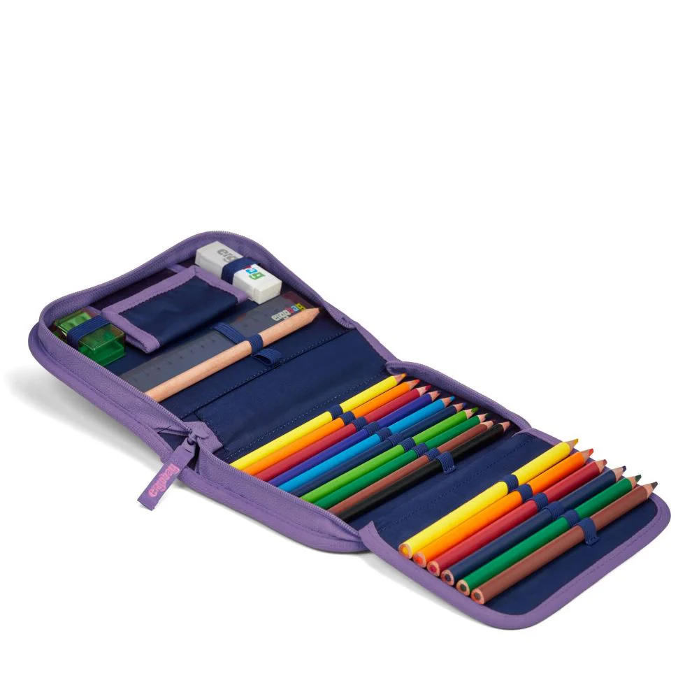 Federmäppchen - komplett bestückt mit hochwertigen Schulmaterialien, Malstifte, Stundenplan, Lineal, Radiergummi, Anspitzer und Co.