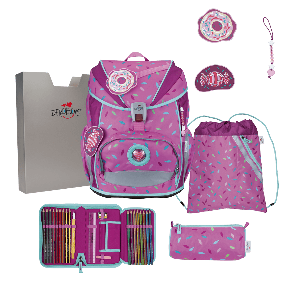 Der ErgoFlex Light Sweet Sprinkles Schulrucksack kommt im praktischen Komplett-Set