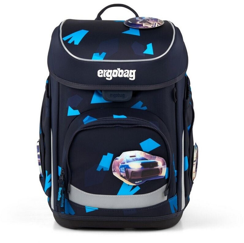 - ergobag Schulranzen cubo (blau, navy) - Der ergobag bietet Ihnen die optimale Kombination innovativer Trekking Technologie mit den Besonderheiten eines Schulranzens. Der Schulranzen ist aufgrund seines ergonomischen Aufbaus mit einem gepolsterten Rückenteil, ergonomischen Butterfly Straps Schulterträgern, einem verstellbaren Brustgurt und einem verstellbaren, breiten Hüftgurt, optimal an die Körperform Ihres Schulkindes angepasst. Durch die stufenlose Rückenanpassung und einem stabilisierenden Alu-Rahmen ist der Schulranzen perfekt geeignet für Schulkinder von 100-150 cm Körpergröße. Das 3D Back Support Rückensystem entlastet dank seiner S-Form den Lendenwirbelsäulenbereich und ist dadurch optimal auf die Anatomie Ihres Schulkindes angepasst. Die innovativen Schultergurte liegen lückenlos auf dem Schulterbereich. Ab der Kollektion 2025/2026 besitzt der ergobag cubo die innovative Easy Click Schnalle. Der Klickverschluss ist leichtläufig und lässt sich daher kinderleicht öffnen und schließen. Unter dem Deckel befinden sich zwei Gummischlaufen zur platzsparenden Aufbewahrung des Etuis. Eine Snack Safe Fronttasche, ausgestattet mit einem wasserfesten Stoff, bietet Platz für die Brotdose. Das Hauptfach mit Trennwand, Bücherfach und Schlüsselring ist praktisch unterteilt. Am Beckengurt befindet sich eine kleine Reißverschlusstasche für das Busticket oder den Schlüssel. Neben der Frontschnalle befindet sich eine Schlaufe zur Befestigung der Hangies (Hangies nicht im Set enthalten). In den fest angenähten Seitentaschen ist Platz für Regenschirm und Co. Der standfeste Splash Protect Boden mit seiner stabilen Bodenwanne aus einem Guss, bietet Schutz vor Nässe. Eine Vielzahl reflektierender Elemente bieten Ihrem Schulkind zusätzliche Sicherheit im Straßenverkehr.