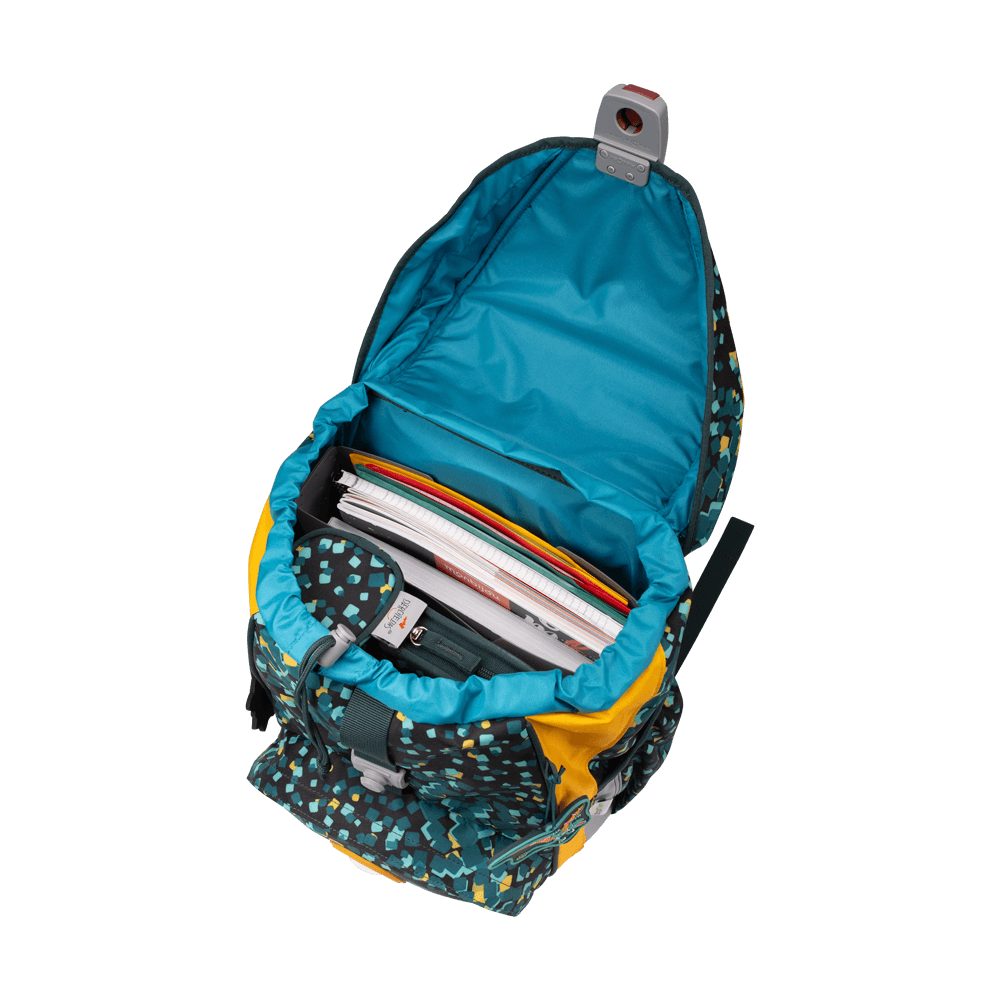 Der ErgoFlex Light ist unser schlanker Schulrucksack. Er ist soft, geräumig und wiegt gerade einmal nur ca. 800 Gramm. Mit den wilden Dino Time Wechselbuttons und dem Dino-Anhänger können Kinder den Rucksack individuell gestalten. Dank seines cleveren Tragegurtsystems wächst er mit und entlastet den Kinderrücken. Die großen retroreflektierenden Flächen sorgen für einen sicheren Schulweg. Das Beste aber ist: Der ErgoFlex Light Dino Time Schulrucksack kommt im praktischen Komplett-Set inklusive 2 Wechselbuttons und 1 Anhänger, Heftebox, Sportbeutel, Faulenzermäppchen und einem befüllten Schüleretui (Staedtler-Qualitätsbuntstifte). So macht Schule Spaß!